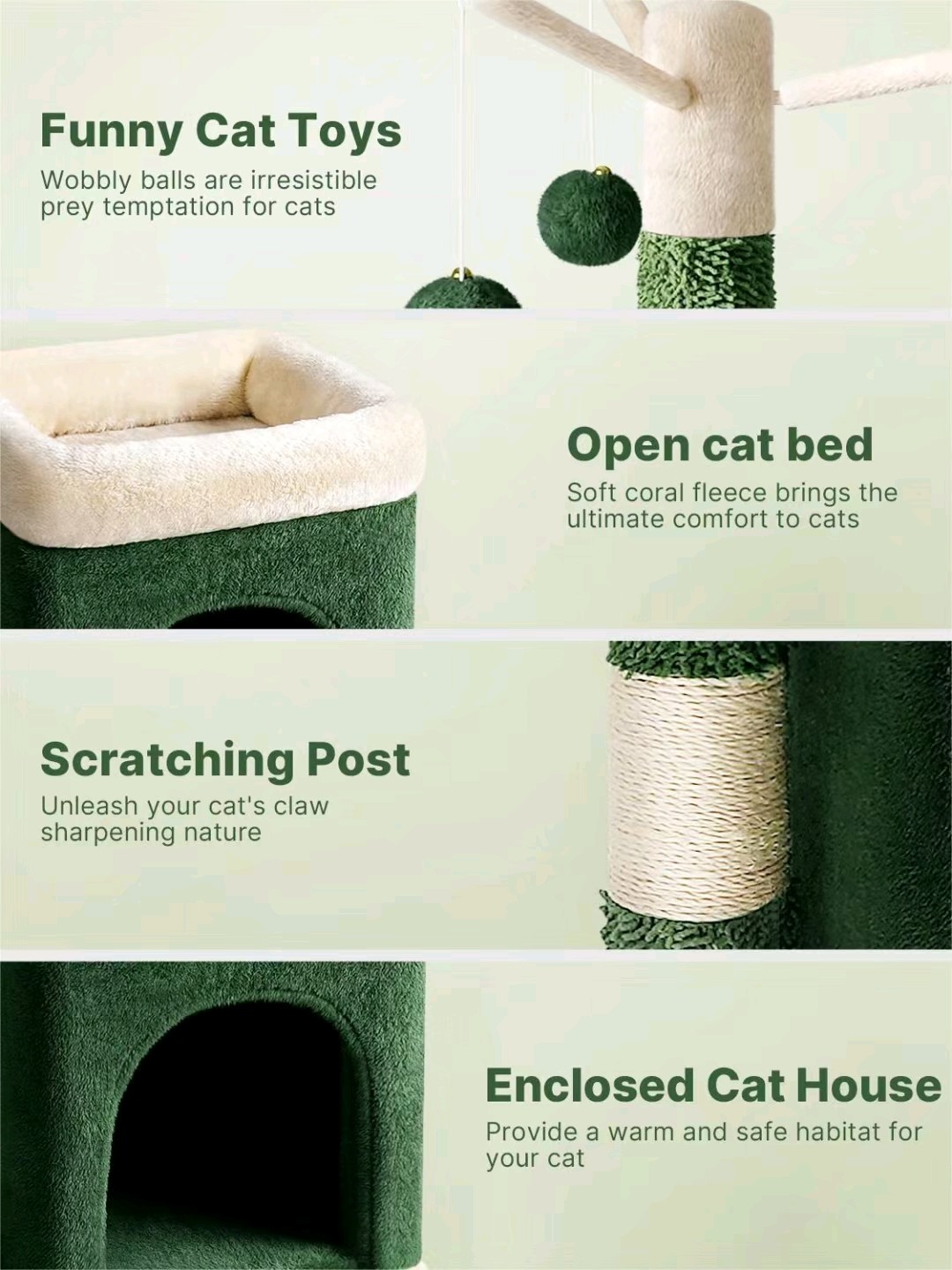 THE SPERANZA. Cat Tree Cactus series cat tree Small green velvet cat tree