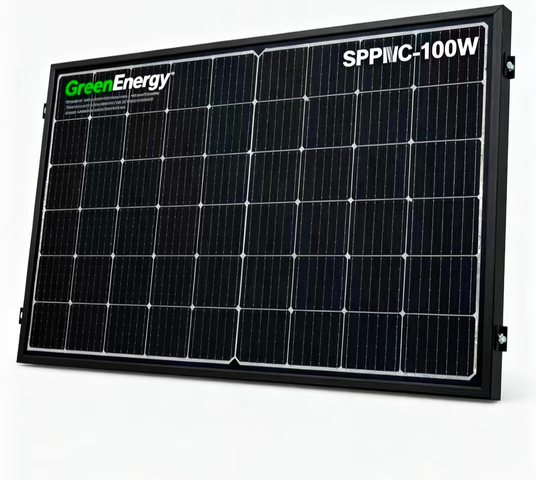 This 100W monocrystalline solar panel features high conversion efficiency (up to 22%) and durable design, suitable for residential rooftop, RV, and off-grid power systems. It comes with anti-corrosion aluminum frame and tempered glass, ensuring 25-year service life. Technical parameters: